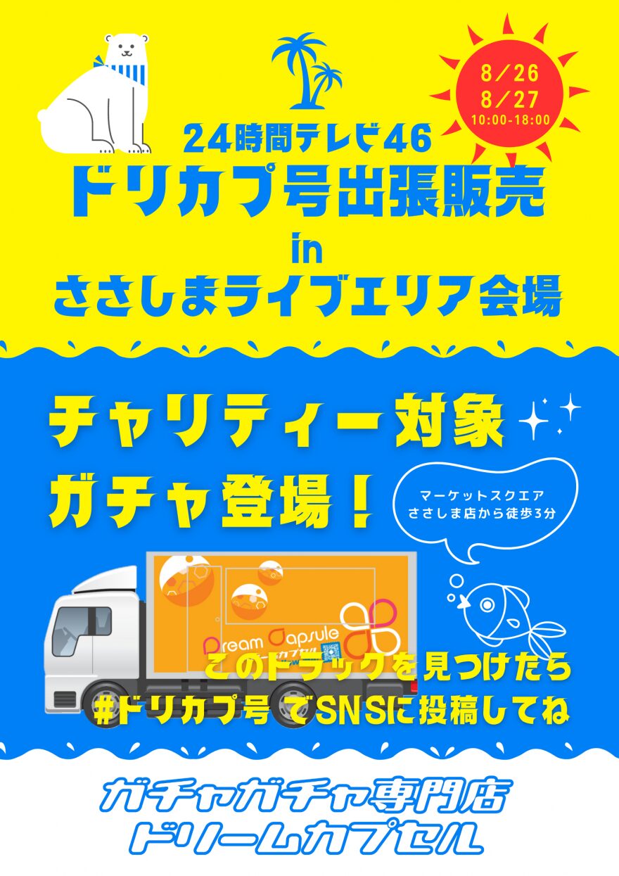 移動カプセルトイ販売カー「ドリカプ号」が『24時間テレビ46~愛は地球を救う~』に参加します。