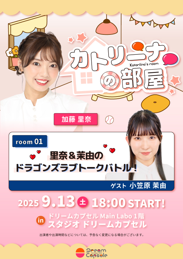 「カトリーナの部屋 room01 里奈&茉由のドラゴンズラブトークバトル」を開催!