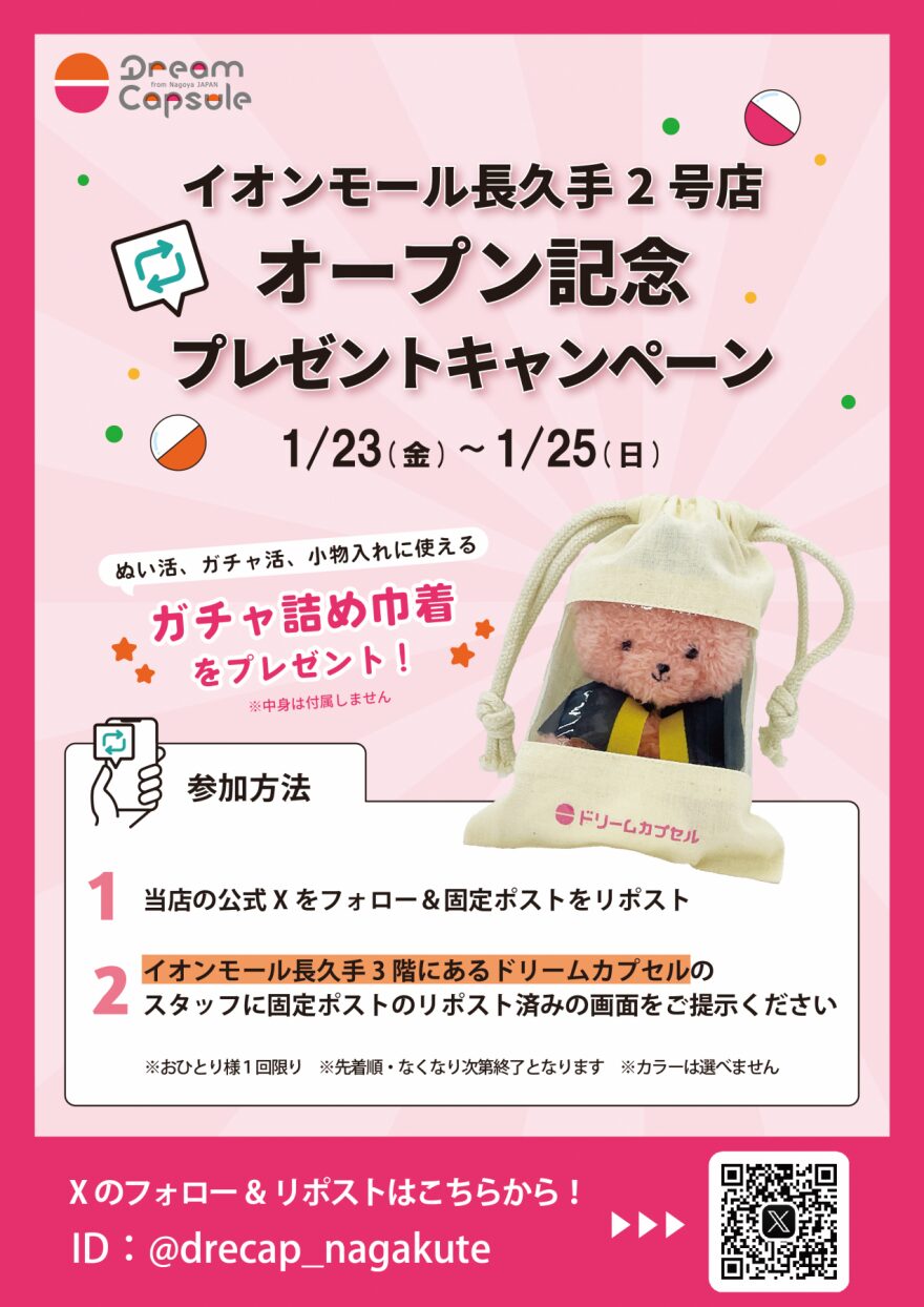 2026年1月23日、「イオンモール長久手」にドリームカプセルの2号店がオープンします!