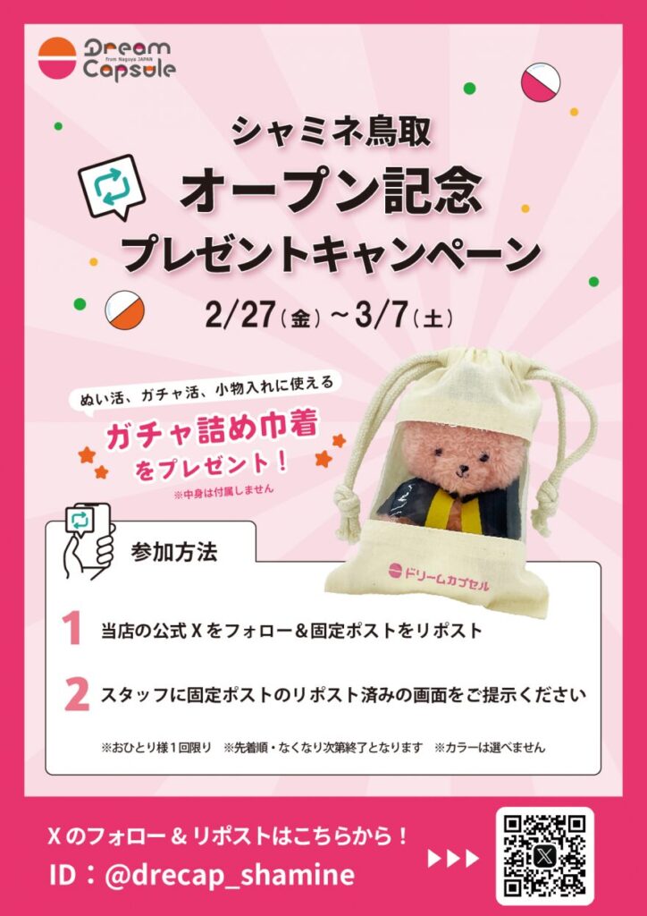 2026年2月27日、「ドリームカプセル シャミネ鳥取」がリニューアルオープンします!