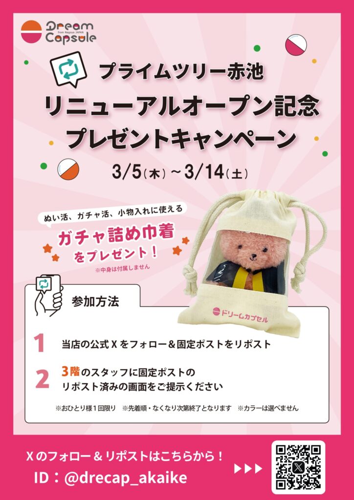 2026年3月5日、「ドリームカプセル プライムツリー赤池」がリニューアルオープンします!